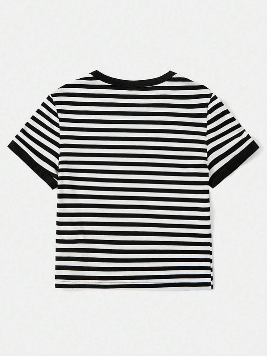 SHEIN- Camiseta crop con estampado de rayas con bordado de corazón/ MUJER