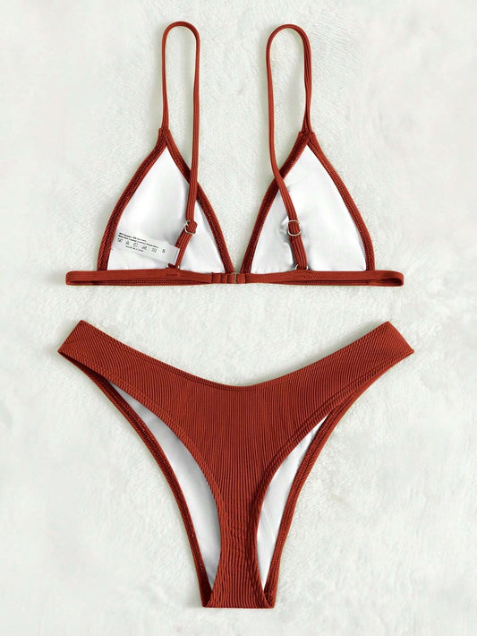 SHEIN- Bañador bikini de canalé triángulo corte alto/ MUJER