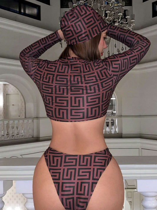 SHEIN Swim Event Conjunto de bikini con estampado completo