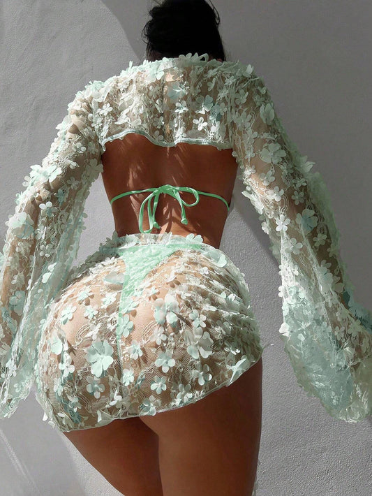 SHEIN Swim Event Conjunto De Bikini De Encaje Floral