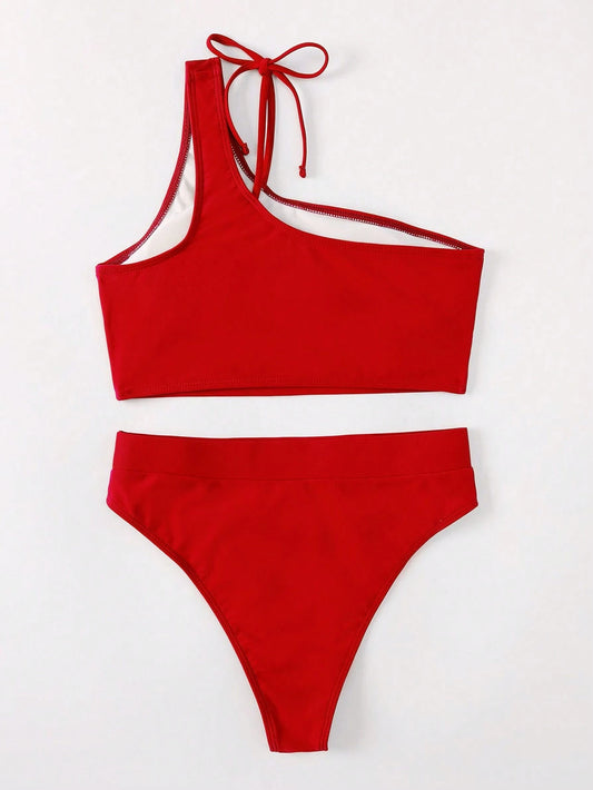 SHEIN Swim SXY Conjunto de bikini de mujer con un hombro