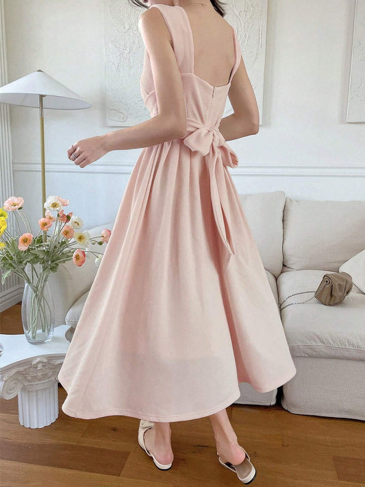 SHEIN - Vestido De Verano Elegante Y Versátil De Satén Con Lazo / MUJER