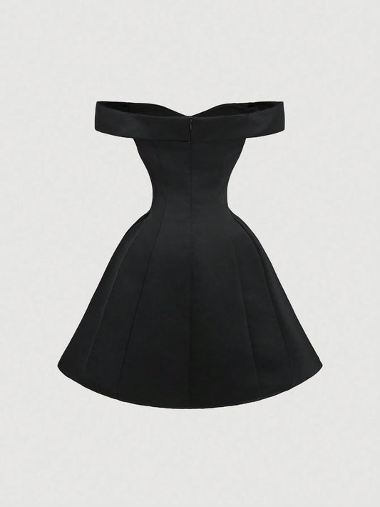 SHEIN - Clasi Vestido Para Mujer Con Hombros Descubiertos Con Adornos / MUJER