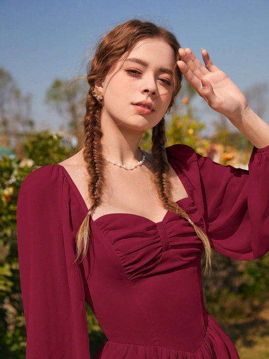 SHEIN - Vestido Rojo De Cita Con Mangas Acampanadas