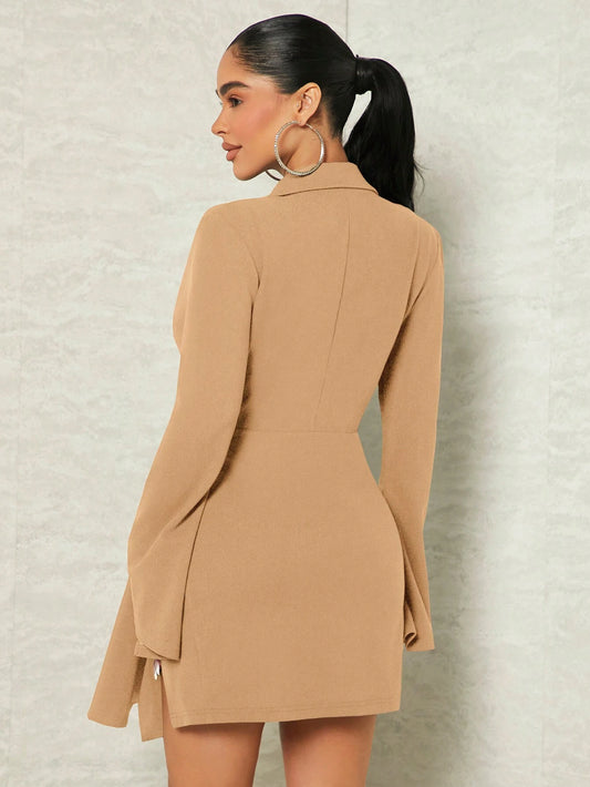 SHEIN - Vestido Plisado Con Solapa Y Cuello Plegable
